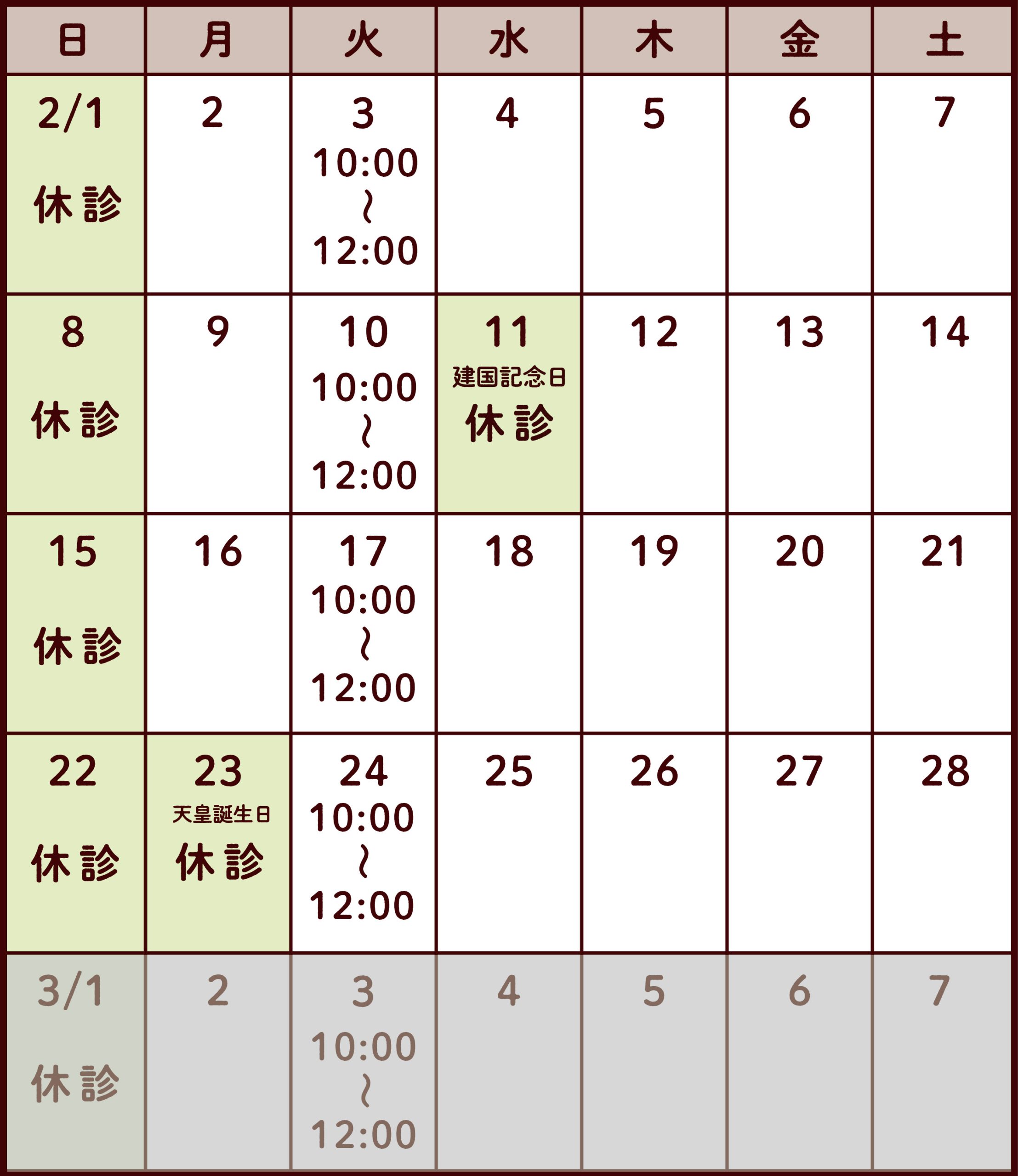 2月の休診日